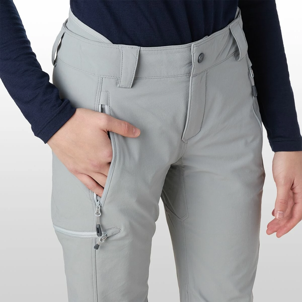 - Zippered hand pockets and back thigh pocket accommodate necessities